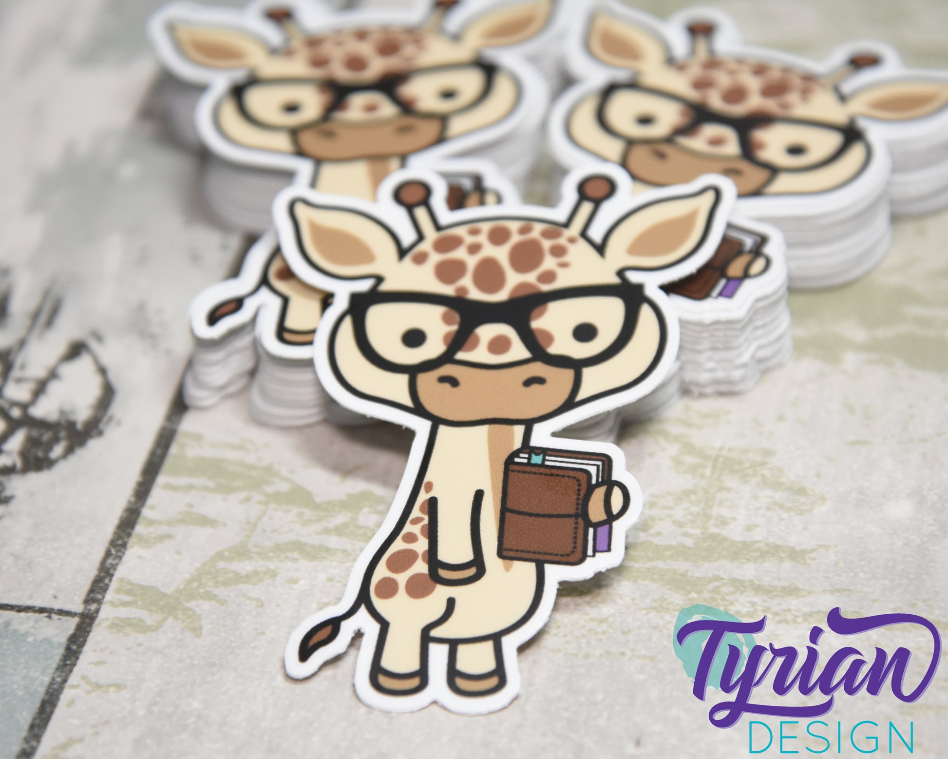 Nerd Giraffe with Planner Vinyl Sticker, Norman Sticker is high quality weather proof vinyl. 2.25x3 inches approx